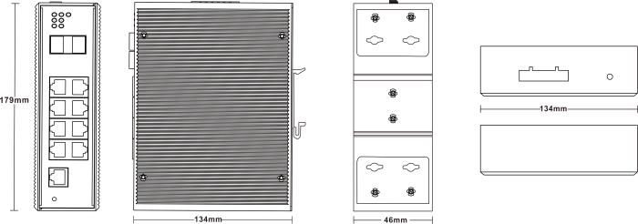 2个千兆光+8个千兆10/10/1000自适应电口工业以太网交换机,SFP接口,DC12-48V供电-宽温(-40℃-85℃)